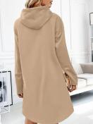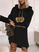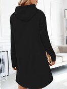 スタイリッシュなポンポンフード付きドレス W5541 - カジュアルなポリエステル・スパンデックス混紡、無地、ジップディテール、秋/冬用洗濯機可、W5541