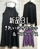 新品☆3L♪黒きれいめワイドサロペット&ラメトップス♪オマケ付☆Q415