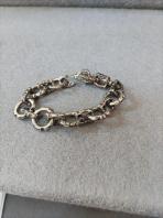 落ち着いた色味のブラスビーズとアンティークを思わせるマリアメダイがシックな腕周りを演出してくれます。