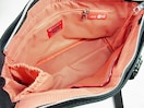 バッグ本体はシックなブラック(黒)です。内部の裏地はオレンジとホワイトのストライプ柄で、開けた時に明るく見やすい配色です。