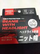 こちらの商品は、男女兼用のヘッドライト付きニット帽の黒色です。