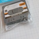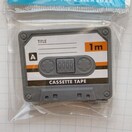 手のひらサイズのカセットテープ型の1mメジャーで、昭和レトロなデザインが特徴です。