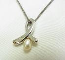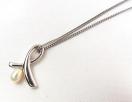 ★ リボンモチーフのようなシルバー製のトップに、一粒のパールが揺れる、上品で可愛らしいデザインです。