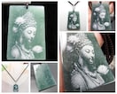 AAAA天然石ひすい観音様フロスト加工ペンダントトップ 横最大約37mm 縦約50mm 厚さ約3.5mm