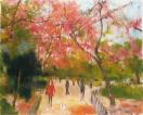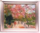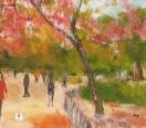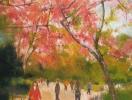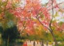 秋日の日本庭園−慶沢園を描いた作品。天王寺公園内にある日本庭園で、樹林に囲まれた林泉回遊式庭園のこの広大な敷地の中には池や滝、泉、浮島などが作られている。多彩に色づく中秋の樹林。紅葉した庭園情景を表現主義的に明るく描きました。 (金山ヒロシ)締切日時