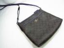 ブラウン(茶色)のシグネチャー柄に、パープル(紫)のレザーの縁取りがアクセントになっています。