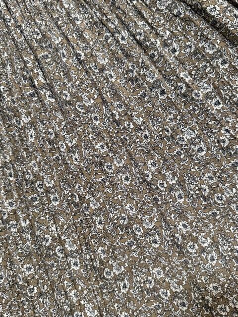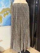 柔らかい生地のブラウン系花柄プリーツロングスカート。