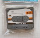 手のひらサイズのカセットテープ型の1mメジャーで、昭和レトロなデザインが特徴でインテリアやぬい活にも大活躍!