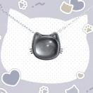 シルバーシャインオブシディアン(黒曜石)を使った ひげがチャーミングなぷっくり黒猫ネックレス