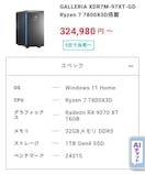 CPUはゲーミング特化のRyzen7 7800X3Dを搭載