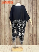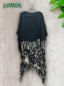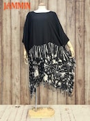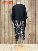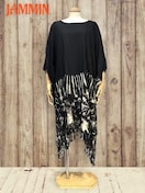 黒色ベースのタイダイフリンジ付きポンチョワンピです。