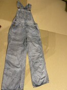 GAPのデニムオーバーオール、肩ひも調整可能で快適なフィット感。