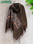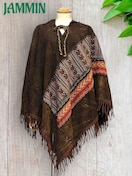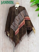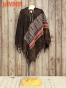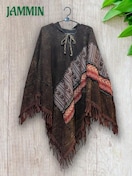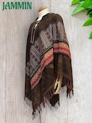 アジアンな織り柄生地を使ったフリンジポンチョです。