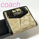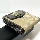 COACH コーチ オプアート 二つ折り 財布 サテン パテントレザー