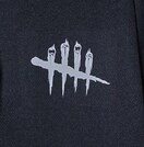 Behaviour Interactiveが手掛ける大人気ホラーゲーム「Dead by Daylight (デッドバイデイライト)」のキラー、TRAPPER(トラッパー)ことエヴァン・マクミランがバックプリントされたジップパーカーと無地ハーフパンツのルームウェア。