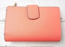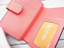 可愛いカラーに、メタルロゴを添えてアクセントをプラス。独立したL字ファスナーのコインケース、カードをたっぷり収納することができるポケット、IDウィンドウを備えた実用的なレイアウトになっています。