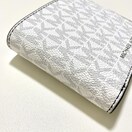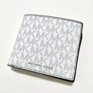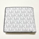 マイケルコースのシグネチャー柄が上品な二つ折り財布です。耐久性に優れたPVC素材を使用しており、長く愛用いただけます。カードポケットも充実しているので、収納力も抜群。ビジネスシーンでもカジュアルなスタイルにも合わせやすい、使い勝手の良いアイテムです。