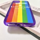 レインボーストライプ柄で楽しさあふれるルックに仕上げたフォンケース。シリコン素材で、衝撃などから端末を保護します。カラフルな見た目が可愛らしく、持つだけでテンションが思わず上がってしまうような、遊び心あふれるアイテムとなっています。