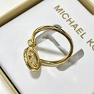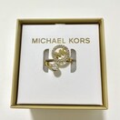 パヴェで縁取った煌びやかなストーンをあしらったMKロゴと輝く大きなストーンの2つの魅力が楽しめるリング。エレガントな風格漂うクラシックなデザインが魅力です。どんな装いにも華を添えます。