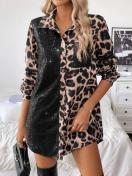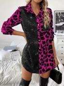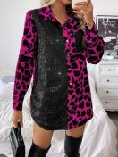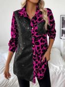 エレガント レオパードプリント シークインパネル 長袖シャツ カジュアルシック 秋 冬用 洗濯機可 エレガントスタイル 春 秋