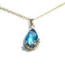 上品で大人可愛い鮮やかなセルリアンカラーの花雫ネックレス
