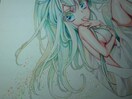 ・水彩用紙にコピックと色鉛筆と水彩絵具で着色。