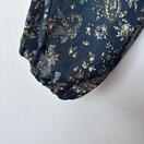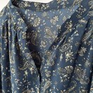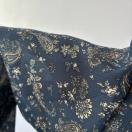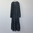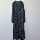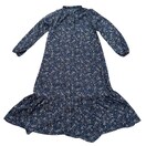 ネイビーのベースに花柄とペイズリー柄がプリントされたデザインのワンピース。