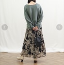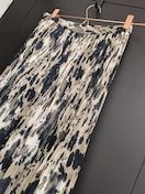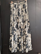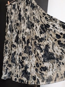 大柄で抽象的に表現されたレオパードプリントと、細かなプリーツがポイント。シフォン生地で色味が優しく見え、ウエスト側は細かなプリーツ仕様。