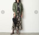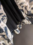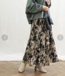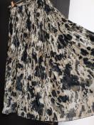 大柄で抽象的に表現されたレオパードプリントと、細かなプリーツがポイント。シフォン生地で色味が優しく見え、ウエスト側は細かなプリーツ仕様。