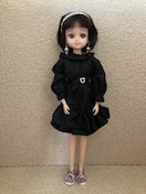 ☆ワンピース 綿生地、猫型バックル、リボンテープ 後ろ側にスナップボタンを付けています