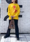 X-girlとSTRANGER THINGSのコラボレーションロンTです。鮮やかなイエローで、コーディネートの主役になります。