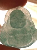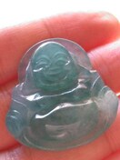 透明感のある氷翡翠の布袋様カービングルースです。穴があいてますので金具を付けたらペンダントトップにできます。