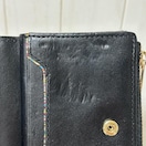 外側、スレ傷ありますが深い傷や汚れはありません。内側は閉めた時に金具が当たる部分のレザーに傷(凹凸)があります。破損や目立った汚れはなく問題なくご使用いただけます。