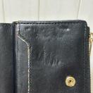 外側、スレ傷ありますが深い傷や汚れはありません。内側は閉めた時に金具が当たる部分のレザーに傷(凹凸)があります。破損や目立った汚れはなく問題なくご使用いただけます。