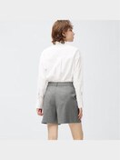 ウエスト:前ボタン留め・ホック留め・ファスナー開き・ゴム入り(調節不可)・ベルトループあり,ポケット:前×2(左右)