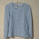 テチチのレース素材のライトブルー長袖トップス、エレガントなデザイン。