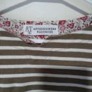 アフタヌーンティー カーキ色ボーダーカットソーです。花柄生地付き