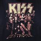 ポールスタンレーが率いる人気バンド『KISS』の1976年に発売された代表的なアルバム『Destroyer(地獄の軍団)』のジャケットをアレンジしたデザインがフロントにプリントされたパーカー。顔がスカルになったデザインがレアで、ファンにはたまらないアイテム。