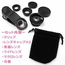 ●1セット売り(クリップ本体、魚眼レンズ、ワイドレンズ、マクロレンズ、レンズカバー2個、巾着)