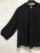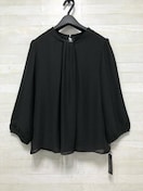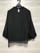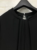 新品☆LL♪黒デザインブラウス&黒パンツ♪オフィスや法事・喪服にも☆Q459
