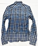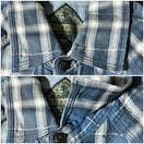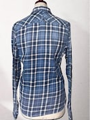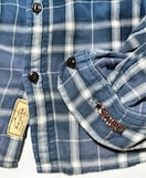 ブルー系チェック柄ですが位置により濃淡がグラデーション的なヴィンテージ風合い