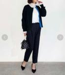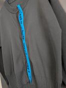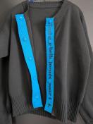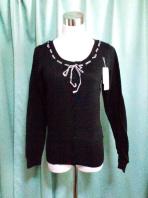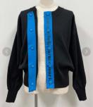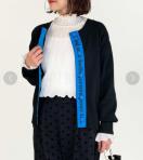 前立て部分にテキスト入り配色テープを配したカーディガン