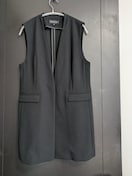 表情のあるクレープ素材を使用したミドル丈のジレです。