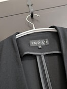 ジャケット感覚できちんと感もありノーカラーで衿まわりがすっきりしたラインなのでシャープに見えるデザインす。