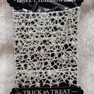 ハロウィンテーマの白と黒の蜘蛛の巣のレースリボン、約1.2mの長さでハンドメイド 、クラフトやデコレーションに最適です。