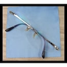 シンプルでとても使いやすいデザインのふちなしメガネフレームです。テンプル ノーズ シルバー / 耳掛け部分パープル系