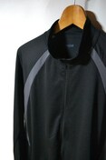 ・前中央ファスナー開き、ポケット前×2(左右)、袖口フィンガーホールあり。