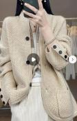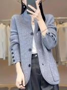 エレガントな女性用ハイネックオープンフロントカーディガン - ブラックボタンディテール&サイドポケット付き ソフトベージュHシルエット ルーズフィット長袖セーター 秋冬レイヤリング、カジュアルアウター耐久性生地 手洗い可能 オフィスウェア
