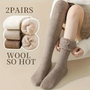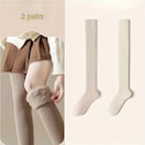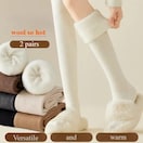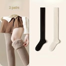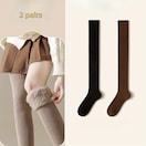 あったか編み込みニーハイソックス、2個セット、冬用、伸縮性抜群