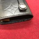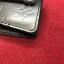 ブラックのモノグラムマット、サイドがブラウン革で、キーリングが付いており、ストラップで中に引き入れる珍しいポルトフォイユですね。